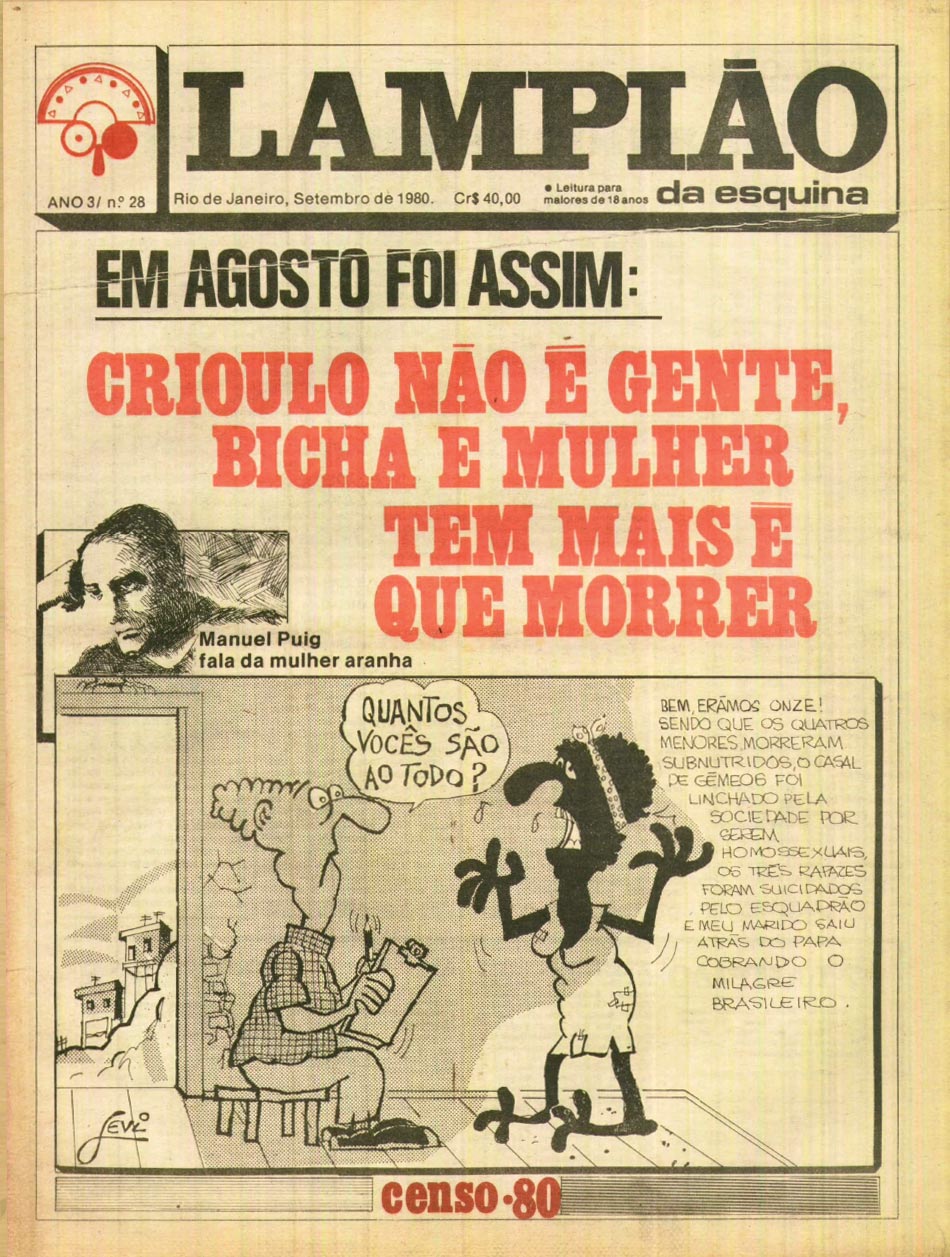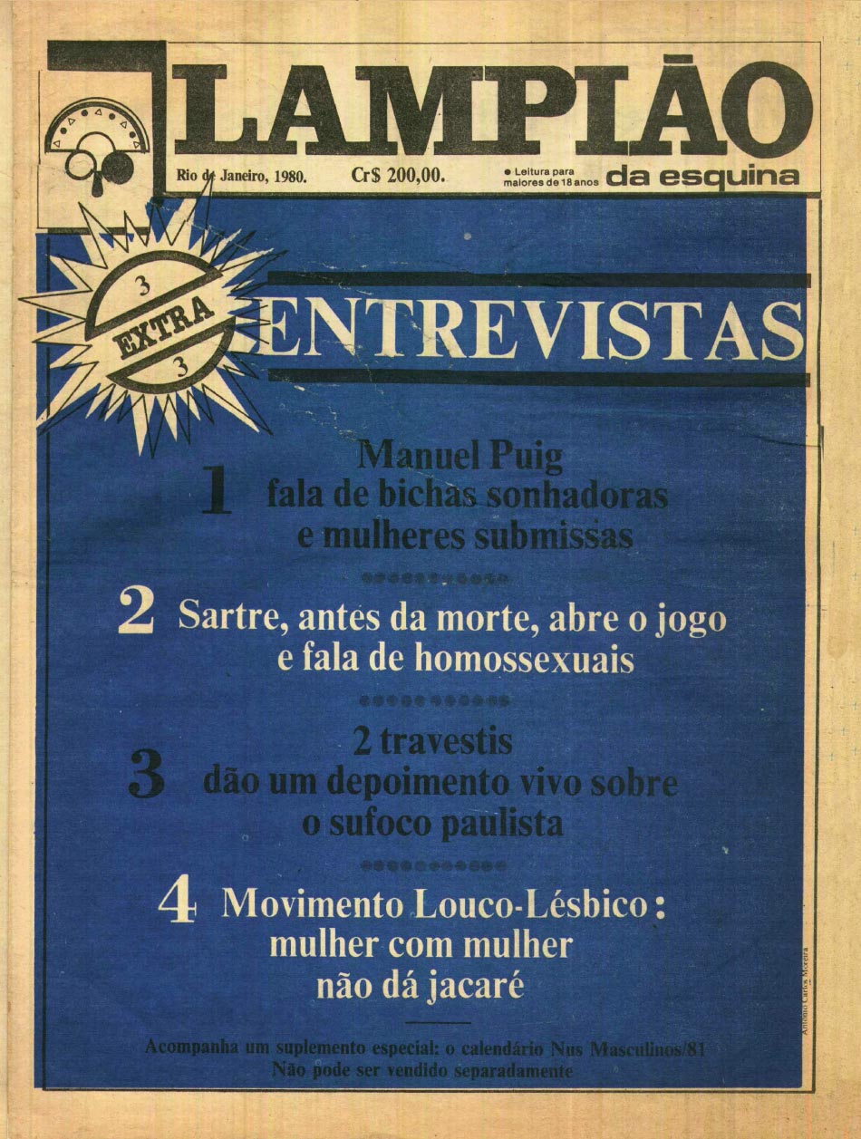 O Lampião é documento vivo do início da articulação e formação de muitos grupos e movimentos ativistas ‘desviados, entendidos’ e feministas, em São Paulo e outras regiões do país. Em suas páginas estavam presentes também questões que vão da masculinização das bichas, à mapas de pegação sexual no centro de São Paulo, da perseguição a frequentadores de cinemas pornô à matança sistemática das travestis, da literatura lésbica de Cassandra Rios e a música de Leci Brandão à arte de Ney Matogrosso e Darcy Penteado.
